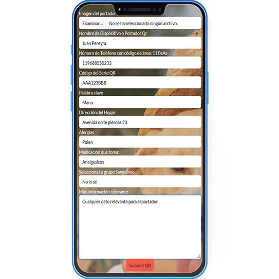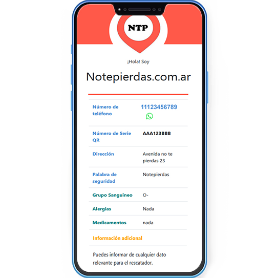 Llena tu ficha, compra nuestra medalla de notepierdas.com.ar, Escaneá el QR y creá tu cuenta en nuestro sitio web, y registre desde “Mis QR” toda la información.